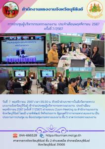 หน่วยงานสังกัดกระทรวงแรงงานจังหวัดบุรีรัมย์ เข้าร่วมการประชุมผู้บริหารกระทรวงแรงงาน ประจำเดือนพฤศจิกายน 2567 ครั้งที่ 7/2567