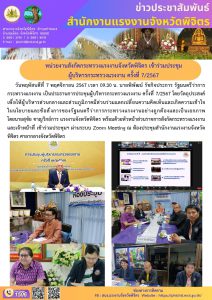 หน่วยงานสังกัดกระทรวงแรงงานจังหวัดพิจิตร เข้าร่วมประชุมผู้บริหารกระทรวงแรงงาน ครั้งที่ 7/2567