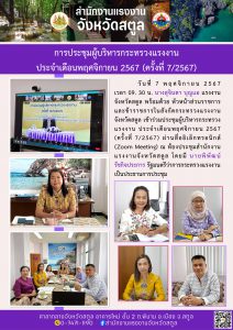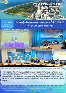 สรจ.สงขลา ประชุมผู้บริหารกระทรวงแรงงาน ครั้งที่ 7/2567 ผ่านระบบ Zoom Meeting