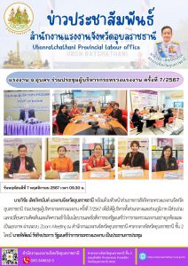 แรงงาน จ.อุบลฯ ร่วมประชุมผู้บริหารกระทรวงแรงงาน ครั้งที่ 7/2567