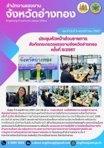 ประชุมหัวหน้าส่วนราชการ สังกัดกระทรวงแรงงานจังหวัดอ่างทอง ครั้งที่ 8/2567