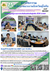 สรจ.สุโขทัย ประชุมคณะอนุกรรมการประกันสังคมจังหวัดสุโขทัย ครั้งที่ 5/2567