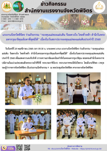 แรงงานจังหวัดพิิจิตร ร่วมกิจกรรม “กองทุนแม่ของแผ่นดิน ร้อยดวงใจ ไทยทั่วหล้า สำนึกในพระมหากรุณาธิคุณอันหาที่สุดมิได้” เนื่องในวันสถาปนากองทุนแม่ของแผ่นดินประจำปี 2568