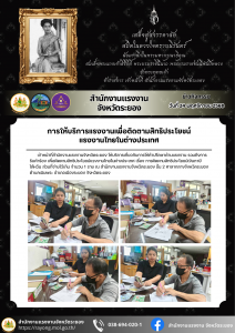 สำนักงานแรงงานจังหวัดระยอง ให้บริการแรงงานเพื่อติดตามสิทธิประโยชน์ แรงงานไทยในต่างประเทศ