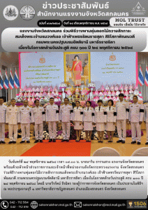 ปลัดกระทรวงแรงงานมอบแรงงานจังหวัดนครปฐมร่วมพิธีเจริญพระพุทธมนต์ และพิธีทำบุญตักบาตรถวายพระราชกุศลพระบาทสมเด็จพระมงกุฎเกล้าเจ้าอยู่หัว และถวายพระกุศลแด่สมเด็จพระเจ้าภคินีเธอ เจ้าฟ้าเพชรรัตนราชสุดา สิริโสภาพัณณวดี