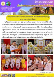 หน่วยงานสังกัดกระทรวงแรงงานจังหวัดพิจิตร เข้าร่วมพิธีถวายผ้าพระกฐินพระราชทาน ประจำปี 2567