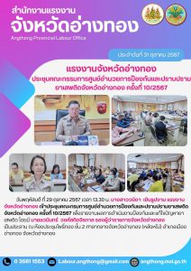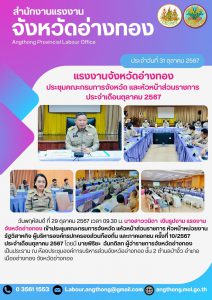 สรจ.อ่างทอง ประชุมคณะกรมการจังหวัด และหัวหน้าส่วนราชการ ประจำเดือนตุลาคม 2567