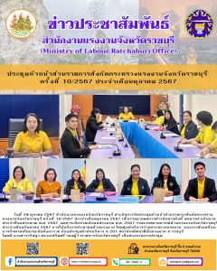 สรจ.ราชบุรี – จัดประชุมหัวหน้าส่วนราชการสังกัดกระทรวงแรงงานจังหวัดราชบุรี ครั้งที่ 10/2567 ประจำเดือนตุลาคม 2567