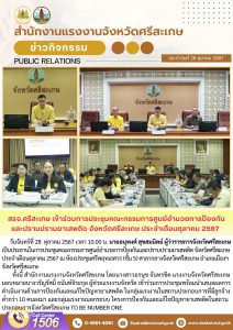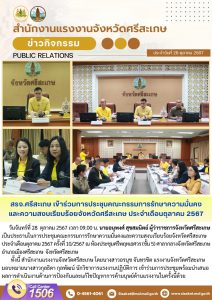 สรจ.ศรีสะเกษ เข้าร่วมการประชุมคณะกรรมการรักษาความมั่นคง และความสงบเรียบร้อยจังหวัดศรีสะเกษ ประจำเดือนตุลาคม 2567