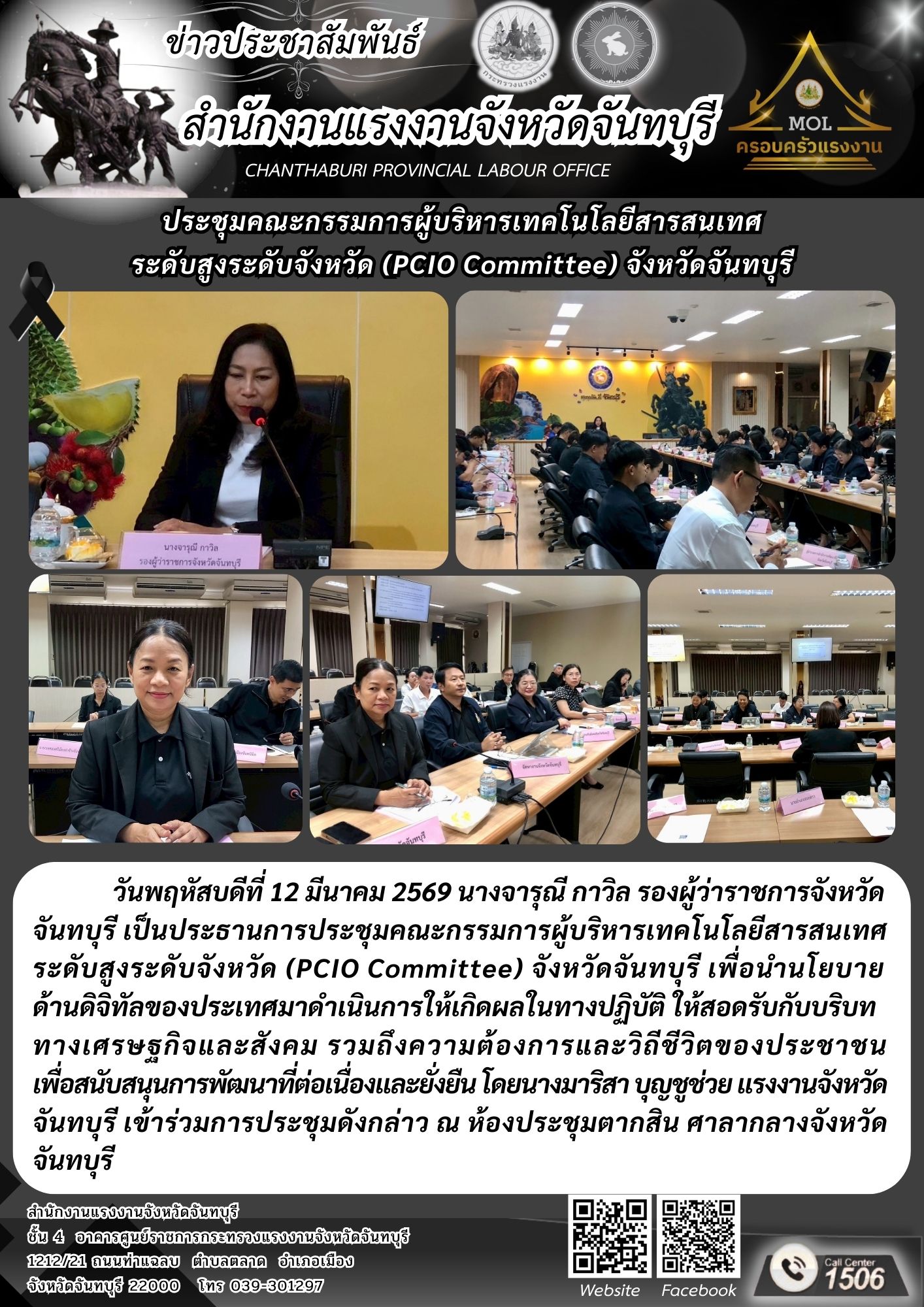 แรงงานจังหวัดจันทบุรี ร่วมประชุมคณะกรรมการผู้บริหารเทคโนโลยีสารสนเทศระดับสูงระดับจังหวัด (PCIO Committee) จังหวัดจันทบุรี