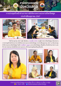 สรจ.สตูล จัดประชุมหัวหน้าส่วนราชการสังกัดกระทรวงแรงงานจังหวัดสตูล ประจำเดือนตุลาคม 2567