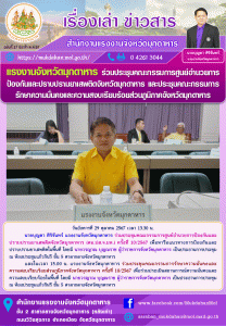สรจ.มุกดาหาร ร่วมประชุมคณะกรรมการศูนย์อำนวยการป้องกันและปราบปรามยาเสพติดจังหวัดมุกดาหาร และประชุมคณะกรรมการรักษาความมั่นคงและความสงบเรียบร้อยส่วนภูมิภาคจังหวัดมุกดาหาร