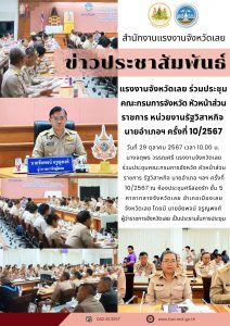 สรจ.เลย ร่วมประชุมคณะกรมการจังหวัด หัวหน้าส่วนราชการ รัฐวิสาหกิจ นายอำเภอ ฯลฯ ครั้งที่ 10/2567