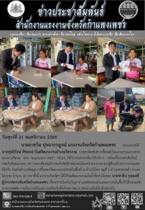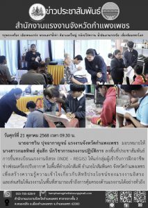 สำนักงานแรงงานจังหวัดกำแพงเพชร ลงพื้นที่ประชาสัมพันธ์การขึ้นทะเบียนแรงงานอิสระ (INDE – REGIS) ให้แก่กลุ่มผู้เข้ารับการฝึกอาชีพ (ช่างซ่อมเครื่องปรับอากาศ) ในพื้นที่ตำบลโกสัมพี อำเภอโกสัมพีนคร จังหวัดกำแพงเพชร