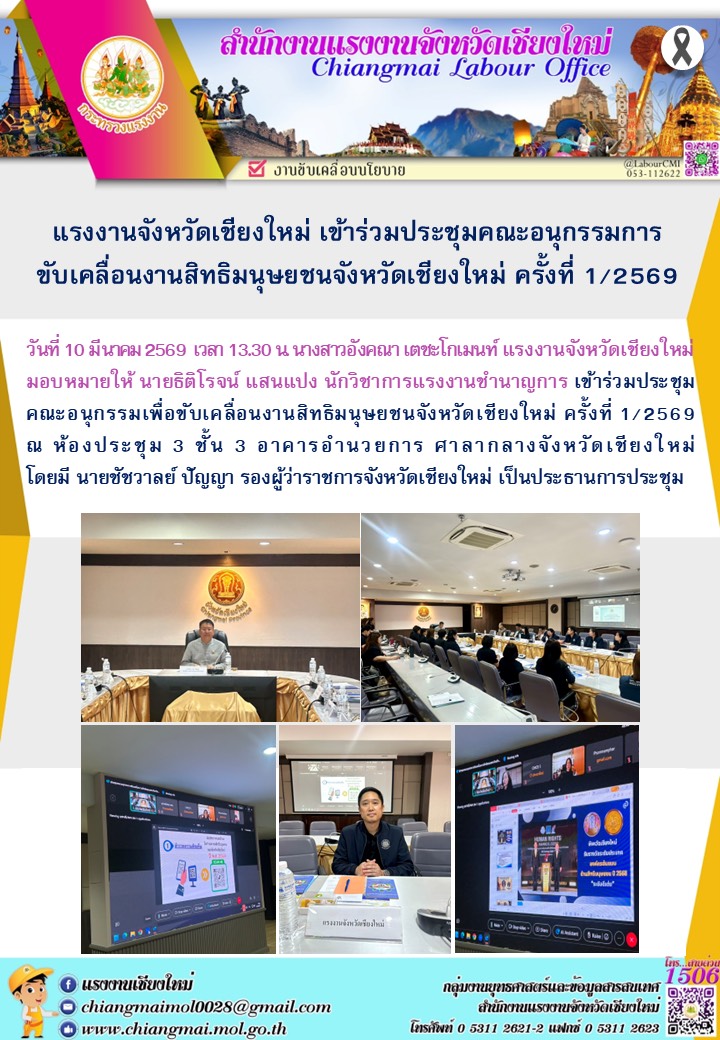 แรงงานเชียงใหม่ ร่วมประชุมคณะอนุกรรมการขับเคลื่อนงานสิทธิมนุษยชนจังหวัดเชียงใหม่ ครั้งที่ 1/2569