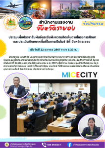 สรจ.ระยอง ร่วมระชุมเพื่อประชาสัมพันธ์และรับฟังความคิดเห็นตามโครงการศึกษาและประเมินศักยภาพพื้นที่ ในการเป็นไมซ์ ซิติี้ จังหวัดระยอง ประจำปีงบประมาณ พ.ศ. 2567 ครั้งที่ 2