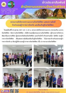 หน่วยงานสังกัดกระทรวงแรงงานจังหวัดพิจิตร แสดงความยินดี กับท่านรองผู้ว่าราชการจังหวัด และต้อนรับสู่จังหวัดพิจิตร