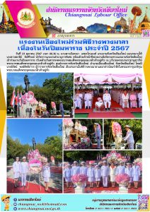 สรจ.แม่ฮ่องสอน มอบหมายให้ นางสาวณัฎธ์นลี นิลไพบูลย์ นักวิชาการแรงงานชำนาญการ ร่วมกิจกรรมจิตอาสาบำเพ็ญสาธารณประโยชน์และบำเพ็ญสาธารณกุศล เนื่องในโอกาสวันคล้ายวันสวรรคตพระบามสมเด็จพระจุลจอมเกล้าเจ้าอยู่หัว (วันปิยมหาราช)