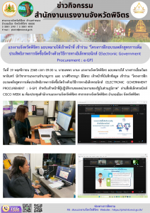 แรงงานจังหวัดพิจิตร มอบหมายให้เจ้าหน้าที่ เข้าร่วม “โครงการฝึกอบรมหลักสูตรการเพิ่มประสิทธิภาพการจัดซื้อจัดจ้างด้วยวิธีการทางอิเล็กทรอนิกส์ (Electronic Government Procurement : e-GP)