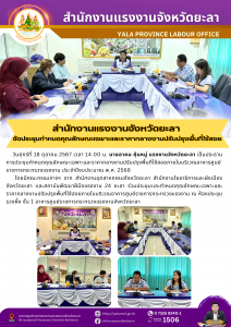 ปลัดกระทรวงแรงงาน ตรวจเยี่ยมหน่วยงานสังกัดกระทรวงแรงงาน จ.สุราษฎร์ธานี พร้อมเน้นย้ำบุคลากรมีภาพลักษณ์ที่ดี เป็นเอกภาพ ให้บริการประชาชนทุกภารกิจตามนโยบาย