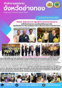 สรจ.อ่างทอง “พิพัฒน์ รัชกิจประการ” รัฐมตรีว่าการกระทรวงแรงงาน ลงพื้นที่จังหวัดอ่างทอง มอบเครื่องมือพื้นฐานชุดการฝึก (ชุดเครื่องมือทำมาหากิน) และเยี่ยมชมภารกิจ 5 เสือกระทรวงแรงงานจังหวัดอ่างทอง