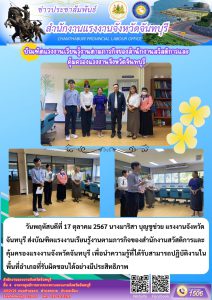 นางมาริสา บุญชูช่วย สรจ.จันทบุรี ส่งบัณฑิตแรงงานเรียนรู้งานตามภารกิจของสำนักงานสวัสดิการและคุ้มครองแรงงานจังหวัดจันทบุรี