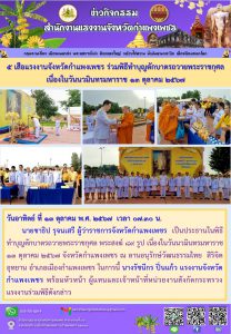 5 เสือสรจ.กำแพงเพชร ร่วมพิธีทำบุญตักบาตรถวายพระราชกุศล เนื่องในวันนวมินทรมหาราช 13 ตุลาคม 2567