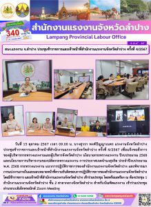 สรจ.ลำปาง ประชุมข้าราชการและเจ้าหน้าที่สำนักงานแรงงานจังหวัดลำปางครั้งที่ 4/2567