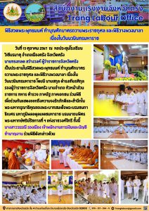 หน่วยงานสังกัดกระทรวงแรงงานจังหวัดพิจิตร ร่วมพิธีทำบุญตักบาตรถวายพระราชกุศล พร้อมวางพวงมาลาและถวายราชสดุดี น้อมรำลึกในพระมหากรุณาธิคุณ รัชกาลที่ 9 เนื่องในวันนวมินทรมหาราช