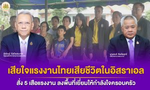 “พิพัฒน์”เสียใจแรงงานไทยเสียชีวิตในอิสราเอล กำชับทูตแรงงานติดตามสถานการณ์ใกล้ชิด ด้าน “ปลัดบุญสงค์”สั่ง 5 เสือแรงงานลงพื้นที่เยี่ยมให้กำลังใจครอบครัวแล้ว
