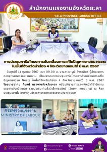 สรจ.ยะลา การประชุมหารือโครงการขับเคลื่อนการแก้ไขปัญหาเยาวชน NEETs ในพื้นที่จังหวัดนำร่อง 4 จังหวัดชายแดนภาคใต้ ปี พ.ศ. 2567