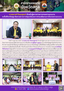 สรจ.สตูล นายสมาสภ์ ปัทมะสุคนธ์ หัวหน้าผู้ตรวจราชการกระทรวงแรงงาน ลงพื้นที่จังหวัดสตูล ติดตามสถานการณ์อุทกภัยและการช่วยเหลือตามภารกิจกระทรวงแรงงาน