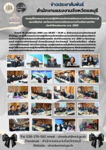 ประชุมชี้แจงแนวทางการปฏิบัติงานอาสาสมัครแรงงานและเครือข่ายจังหวัดชลบุรีและโครงการอาสาสมัครแรงงานต้านภัยยาเสพติด ประจำปีงบประมาณ พ.ศ.2569