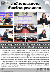 แรงงานสมุทรสงคราม ร่วมประชุมคณะอนุกรรมการพัฒนาการเกษตรและสหกรณ์จังหวัดสมุทรสงคราม