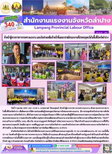 หัวหน้าตรวจราชการกระทรวงแรงงาน มอบเงินช่วยเหลือเจ้าหน้าที่และอาสาสมัครแรงงานที่ประสบอุทกภัยในพื้นที่จังหวัดลำปาง