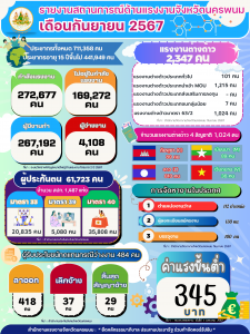 สรจ.อ่างทอง ข้อมูลด้านแรงงานประจำเดือนกันยายน 2567