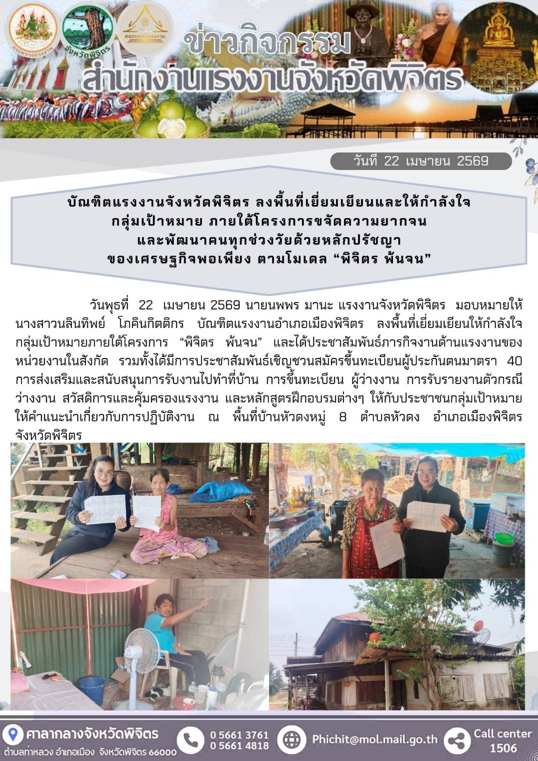 บัณฑิตแรงงานจังหวัดพิจิตรอำเภอเมืองพิจิตร ลงพื้นที่ให้กำลังใจกลุ่มเป้าหมายตามโมเดล “พิจิตร พ้นจน”