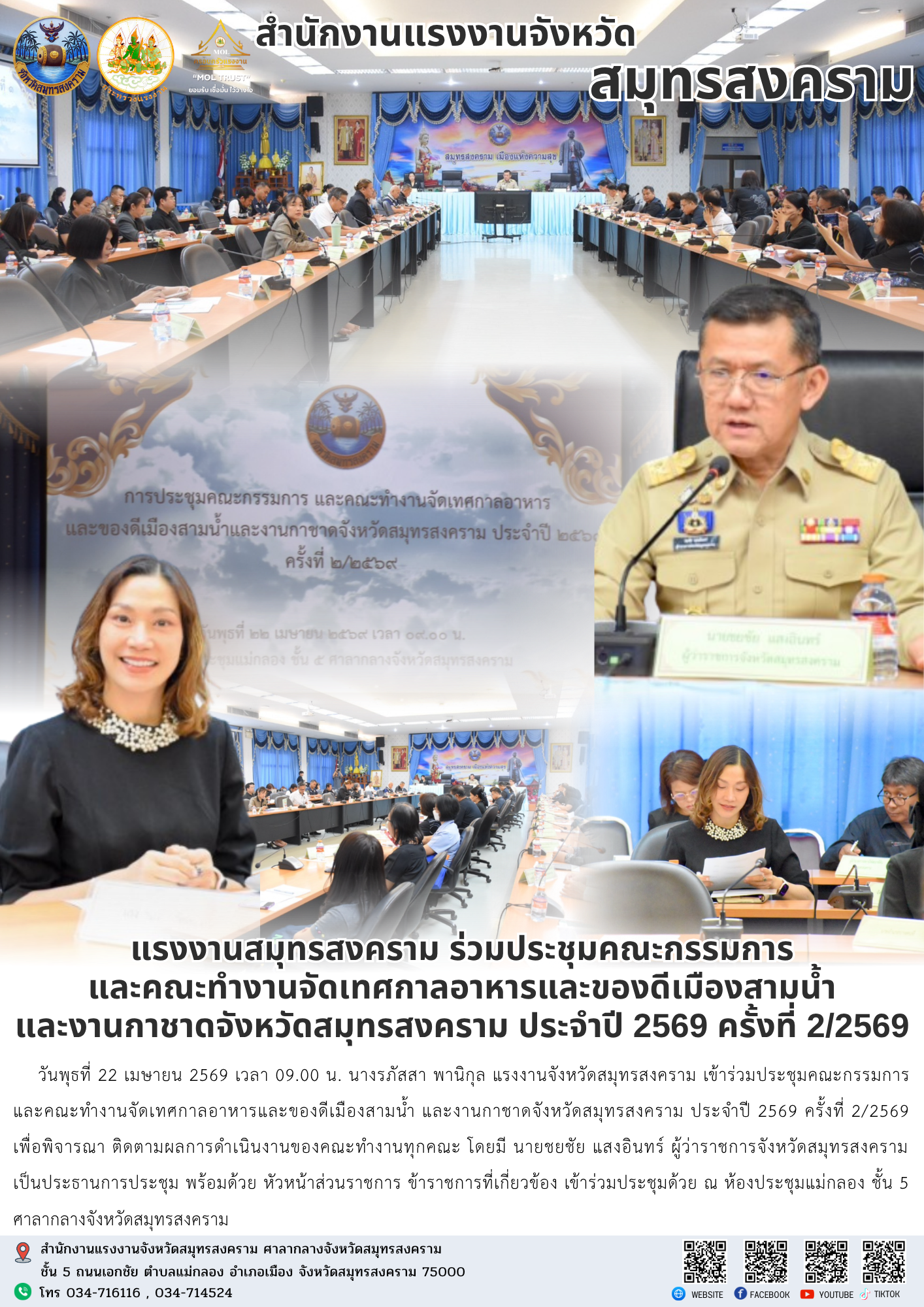 แรงงานสมุทรสงคราม ร่วมประชุมคณะกรรมการ และคณะทำงานจัดเทศกาลอาหารและของดีเมืองสามน้ำ และงานกาชาดจังหวัดสมุทรสงคราม ประจำปี 2569 ครั้งที่ 2/2569