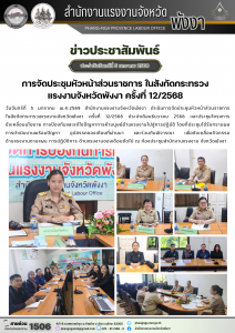 สรจ.พังงา จัดประชุมหัวหน้าส่วนราชการ ในสังกัดกระทรวงแรงงานจังหวัดพังงา ครั้งที่ 12/2568