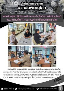 เจ้าหน้าที่.ศบร.รง ให้บริการด้านแรงงานแก่ประชาชน ณ ศูนย์บริการร่วมกระทรวงแรงงานจังหวัดพิษณุโลก