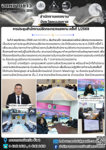 แรงงานจังหวัดหนองคาย ร่วมการประชุมสำนักงานปลัดกระทรวงแรงงาน ครั้งที่ 1/2569 ผ่านสื่ออิเล็กทรอนิกส์ (Zoom Meeting)