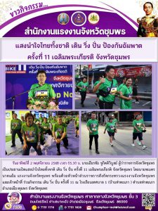 แรงงานจังหวัดชุมพร ร่วมกิจกรรมแสงนำใจไทยทั้งชาติ เดิน วิ่ง ปั่น ป้องกันอัมพาต ครั้งที่ 11 เฉลิมพระเกียรติ จังหวัดชุมพร