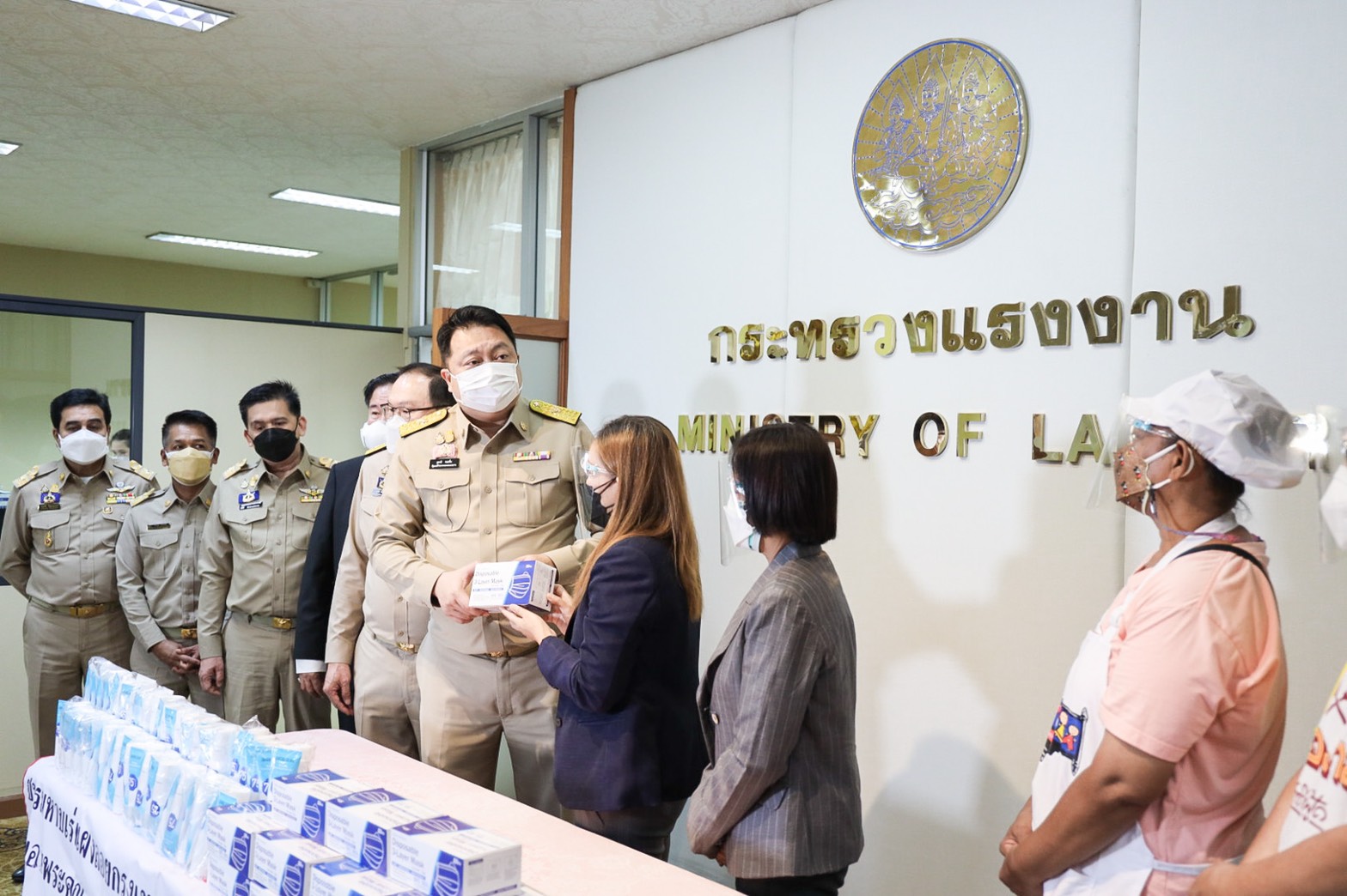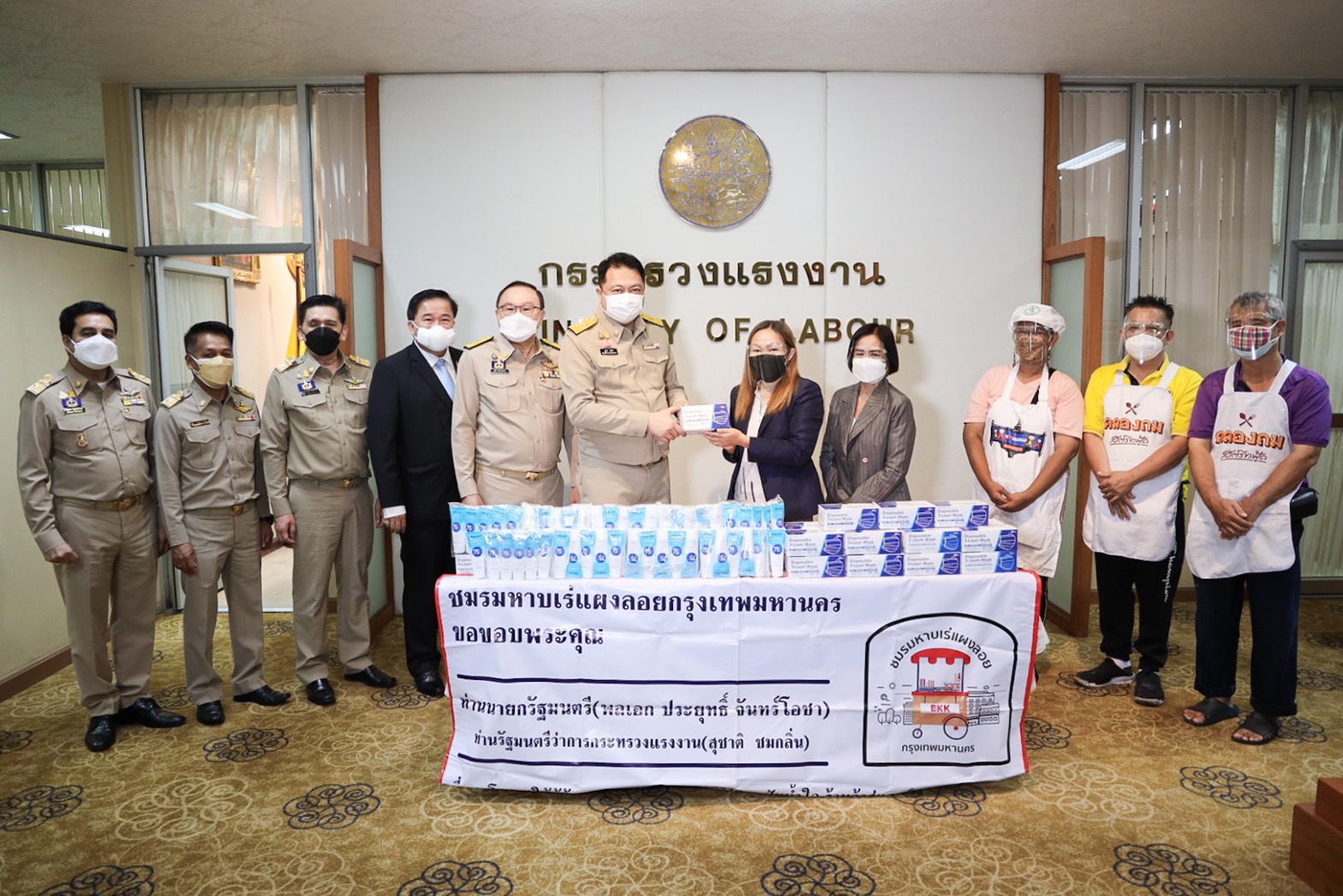 เมื่อวันที่ 9 สิงหาคม 2564 นายสุชาติ ชมกลิ่น รัฐมนตรีว่าการกระทรวงแรงงาน ให้ นางสาวญาดา พรเพชรรัมภา ประธานชมรมหาบเร่แผงลอยกรุงเทพมหานคร และสมาชิก เข้าพบเพื่อมอบกระเช้าให้กำลังใจและขอบคุณ นายกรัฐมนตรี พล.อ.ประยุทธ์ จันทร์โอชา ผ่าน รมว.แรงงาน ที่ได้ให้ความช่วยเหลือสมาชิกชมรมหาบเร่แผงลอยกรุงเทพมหานครในการทำข้าวกล่องส่งแคมป์คนงานในพื้นที่กรุงเทพมหานคร ตามโครงการปันน้ำใจร้านค้าสู่แรงงาน ณ ห้องจัตุมงคล ชั้น 6 อาคารกระทรวงแรงงาน โดยมี นายสุรชัย ชัยตระกูลทอง ผู้ช่วยรัฐมนตรีประจำกระทรวงแรงงาน นายจำลอง ช่วยรอด คณะที่ปรึกษารัฐมนตรีว่าการกระทรวงแรงงาน นายไพโรจน์ โชติกเสถียร อธิบดีกรมการจัดหางาน เข้าร่วมในครั้งนี้ด้วย โดย รมว.แรงงาน กล่าวว่า โครงการปันน้ำใจร้านค้าสู่แรงงาน กรมการจัดหางานจะให้ความช่วยเหลือด้านอาหารวันละ 1 มื้อ ตั้งแต่วันที่ 12 – 27 กรกฎาคม 2564 เป้าหมายแคมป์คนงานในพื้นที่กรุงเทพมหานคร จำนวน 520 แห่ง 750,000 กล่อง และปริมณฑล จังหวัดปทุมธานี นนทบุรี สมุทรสาคร นครปฐม สมุทรปราการ รวมจำนวน 797 แห่ง 500,000 กล่อง โดยมีผู้ร่วมโครงการ ได้แก่ ชมรมหาบเร่แผงลอยกรุงเทพมหานคร สมาคมผู้ขับขี่รถรับจ้างแห่งประเทศไทย สมาคมภัตตาคารไทย และร้านค้าบริเวณแคมป์ก่อสร้าง รวม 132 แห่ง