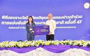 7 เหรียญฝีมือยอดเยี่ยม พร้อมอัดฉีดรางวัลรวมมูลค่ารวมกว่าล้านบาท โดยมี นายไพโรจน์ โชติกเสถียร ปลัดกระทรวงแรงงาน นางสาวบุปผา เรืองสุด อธิบดีกรมพัฒนาฝีมือแรงงาน ผู้บริหารกระทรวงแรงงาน ผู้บริหารกรมพัฒนาฝีมือแรงงาน ร่วมเป็นเกียรติในพิธี ณ ห้องประชุมกระทรวงแรงงาน ชั้น 5 อาคารกระทรวงแรงงาน