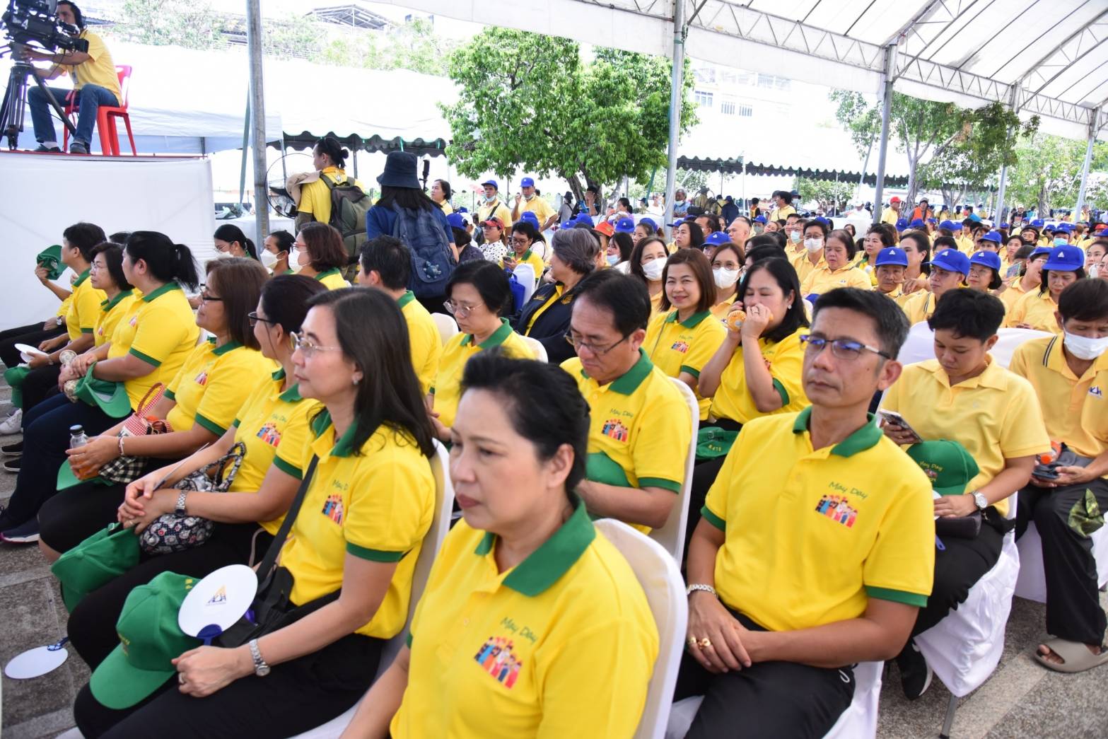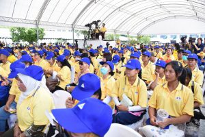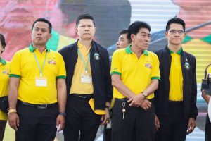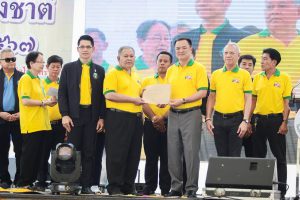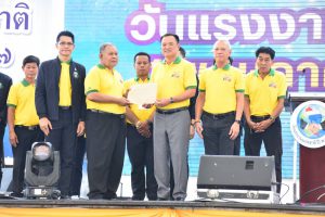 In the morning, the Labour Minister, Mr. Phiphat Ratchakitprakarn, presided over the merit-making ceremony of offering breakfast on National Labour Day to 9 monks. Somdet Phra Maha Ratchamongkol Muni (Chao Khun Thongchai) from Wat Traimit Wittayaram Worawihan presided over the ceremony from the monk’s side at the city square. After that, a procession was set up to honour His Majesty the King. The procession included executives and officials of the Ministry of Labour and the procession of workers, who moved from the crossroads at Rajadamnern Nok Road and to the city square, Bangkok City Hall.