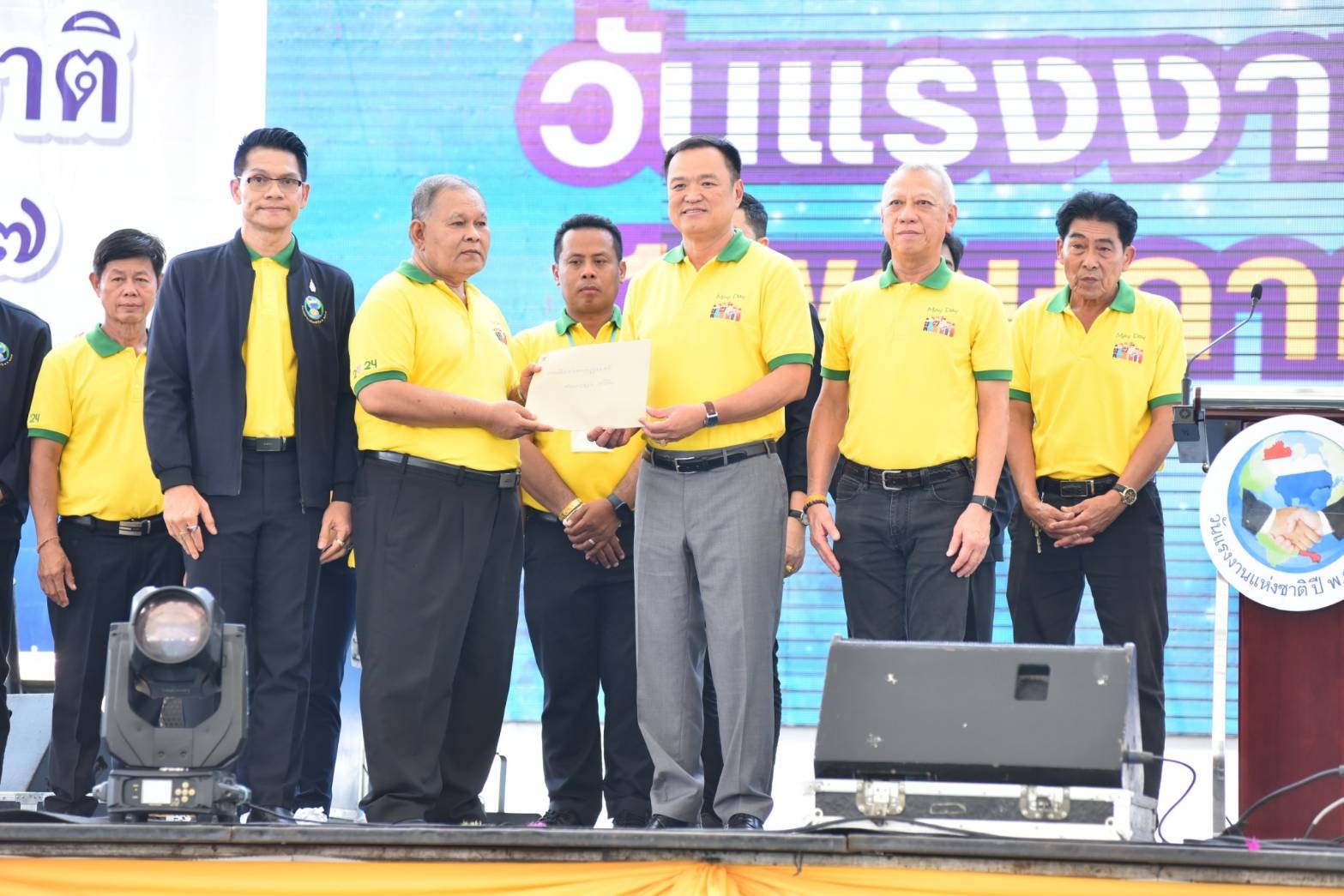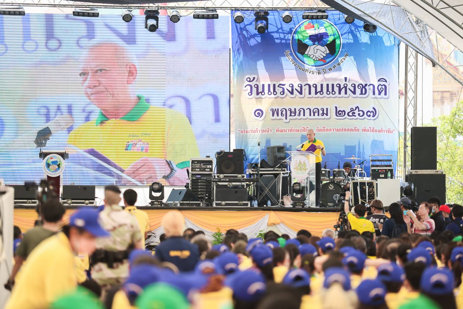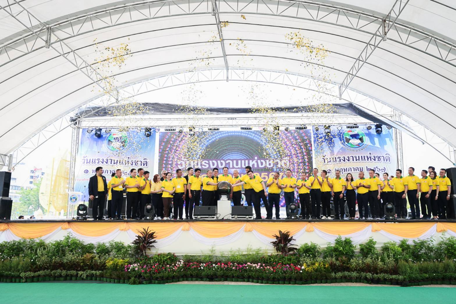On May 1, 2024, the Deputy Prime Minister and Minister of Interior, Mr. Anutin Charnvirakul, presided over the opening ceremony of National Labour Day on May 1, 2024. The Labour Minister, Mr. Phiphat Ratchakitprakarn, gave a report. The Assistant to the Labour Minister, Mr. Siraphop Duangsodsri, the Labour Minister’s Advisor, Mr. Thanat Thaweekueakulkit, the Secretariat to the Labour Minister, Mr. Aree Krainara, from the Prime Minister’s Secretariat’s Office, performing duties for the Ministry of Labour, Mr. Phuchong Worasri, the Ministry of Labour’s spokesperson, Mr. Phumiphat Mueanchan, the Permanent Secretary of Labour, Mr. Pairoj Chotikasathien, Chairman of the National Labour Day 2024 Organizing Committee, Mr. Thawee Deying, the Ministry of Labour’s executives, labour leaders, and thousands of workers joined the occasion at the city square, Bangkok City Hall.