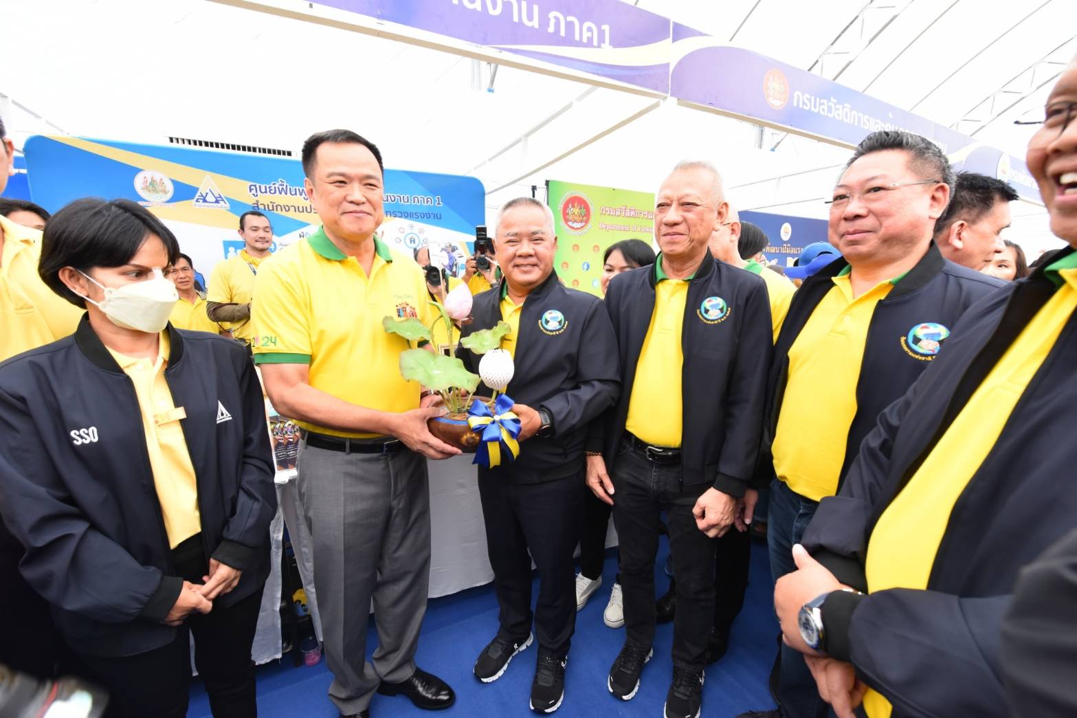 From there, Mr. Anutin met and greeted workers who attended the event. Even though the weather was hot and humid, many workers came to give a warm welcome. For the National Labour Day this year, agencies under the Ministry of Labour joined in setting up booths to organize engaging activities, such as job recruitment through the thaimeengantum platform, demonstrations of self-employment opportunities, training through the DSD Online Training system on making herbal drinks, free basic health check-up services from hospitals in the Social Security Office network, provision of social security rights verification services, games, quizzes, with many give away prizes.