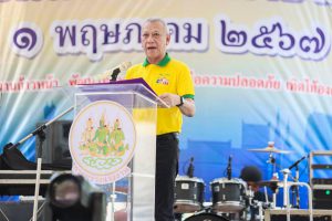 Mr. Anutin said that today he was honoured to receive this assignment from the Prime Minister to commence the National Labour Day event on behalf of the Government to celebrate the importance of National Labour Day Together with all the workers, the main force in driving the country’s economy and societal progress. He said that we are living in an era of rapid change, all of which affect the quality of life of workers and employment, whether it is a change from technological advancement, the population structure, entering an aging society, or changes in climate conditions, including the spread of emerging diseases. The government is well aware of the challenges that may arise. Therefore, efforts have been made to implement the policy to promote the quality of life and ensure that all workers have good health, income, and stability. The policy is reflected through various operations of the Ministry of Labour, whether it be expediting the adjustment of the minimum wage to 400 Baht, proposing a draft bill to promote and protect independent workers, organizing upskilling courses for Thai workers in the digital age, free safety service projects for workers’ safety, expediting the issuance of ministerial regulations concerning the protection of domestic workers or promoting the development of the SSO Healthy medical care system for increased safety in the workplace, and studying the feasibility of establishing a hedge fund for employees who have been laid off.