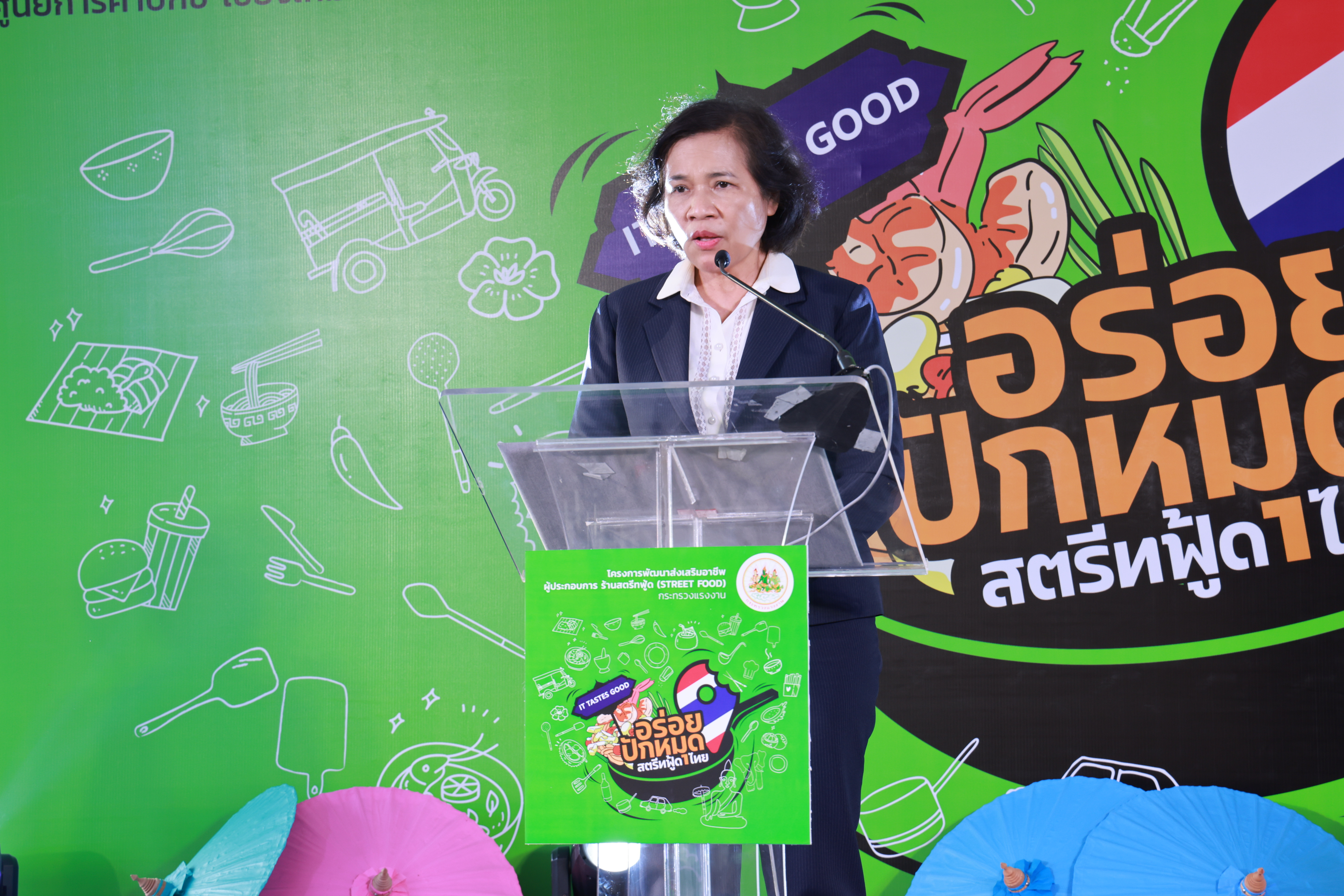 นางต้องใจ กล่าวว่า ตามที่กระทรวงแรงงาน ได้จัดทำโครงการพัฒนาส่งเสริมอาชีพผู้ประกอบการร้านสตรีทฟู้ด (Street Food) กระทรวงแรงงาน โดยมีกิจกรรมประกอบด้วย การเปิดตัวโครงการ การจัดฝึกอบรมผู้สนใจประกอบอาชีพสตรีทฟู้ดรายใหม่ และผู้ประกอบอาชีพสตรีทฟู้ดรายเดิม จำนวนกว่า 30,000 ราย รวมทั้ง การจัดกิจกรรมแสดงร้านค้าสตรีทฟู้ดในวันนี้ ซึ่งเป็นส่วนหนึ่งของโครงการมีวัตถุประสงค์เพื่อสร้างโอกาสในการประกอบอาชีพสตรีทฟู้ด สร้างรายได้ และกระตุ้นเศรษฐกิจในชุมชน เป็นการประชาสัมพันธ์อาหารในท้องถิ่นและร้านอาหารต่างๆ ให้เป็นที่รู้จักของนักท่องเที่ยวและประชาชนทั่วไป อีกทั้งยังเป็นการยกระดับผู้ประกอบอาชีพสตรีทฟู้ดของจังหวัด ให้มีโอกาสนำเสนอรูปแบบการขายใหม่ เช่น รูปแบบฟู้ดทรัค (Food Truck) ซึ่งถือเป็นทางเลือกสำหรับผู้ต้องการเริ่มต้นธุรกิจสตรีทฟู้ดในรูปแบบต่าง ๆ