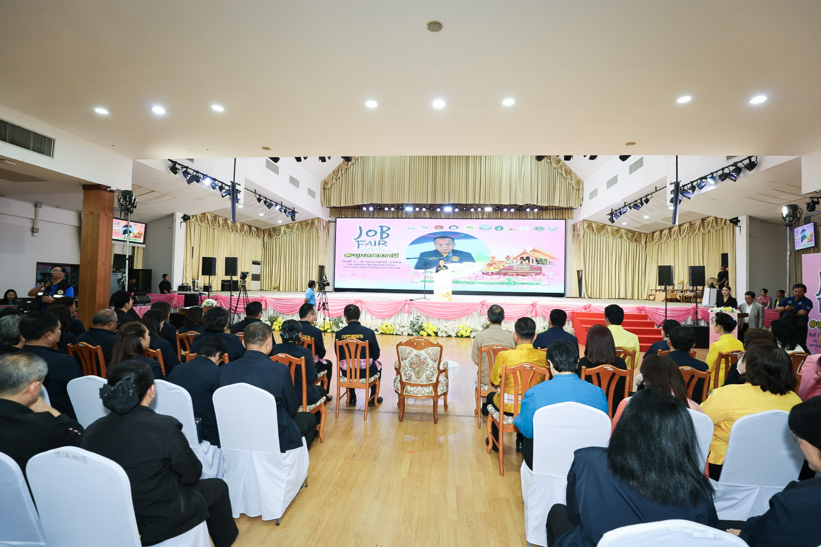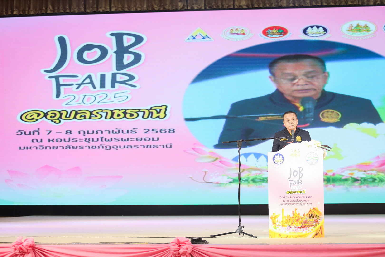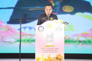 วันที่ 7 กุมภาพันธ์ 2568 นายพิพัฒน์ รัชกิจประการ รัฐมนตรีว่าการกระทรวงแรงงาน มอบหมายให้นายอารี ไกรนรา เลขานุการรัฐมนตรีว่าการกระทรวงแรงงาน เป็นประธานในพิธีเปิดงาน “JOB FAIR 2025 @อุบลราชธานี” โดยมีนายสมชาย มรกตศรีวรรณ อธิบดีกรมการจัดหางาน กล่าวรายงาน นายสมาสภ์ ปัทมะสุคนธ์ รองปลัดกระทรวงแรงงาน พร้อมด้วยผู้บริหารกระทรวงแรงงาน ร่วมเป็นเกียรติ นายภูษิต น้อยโสภากุล รองผู้ว่าราชการจังหวัดอุบลราชธานี กล่าวต้อนรับ หัวหน้าส่วนราชการสังกัดกระทรวงแรงงานจังหวัดอุบลราชธานี นักเรียน นักศึกษา สถานประกอบการภาคเอกชน ร่วมให้การต้อนรับ ณ หอประชุมไพรพะยอม มหาวิทยาลัยราชภัฏอุบลราชธานี จังหวัดอุบลราชธานี